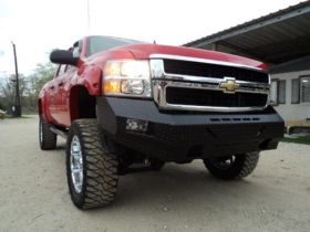 The front bumper with no top by Thunderstruck comes with a black powder coat finish. It does come with install hardware. It also comes with a 1 year MFG warranty.