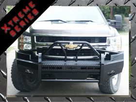The Frontier Gear Xtreme Front Bumper comes with a black powder coat finish. It does come with install hardware. It also comes with a 1 year MFG warranty. It will work with the factory fog lights & tow hooks.