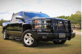The Ranch Hand Summit Series full front bumper comes with a black powder coat finish. It does come with install hardware. It will work with the factory fog lights & tow hooks on most applications, contact us to verify upon purchase. It also comes with a 1 year MFG warranty.