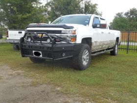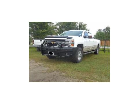 The Frontier Gear Xtreme Front Bumper comes with a black powder coat finish. It does come with install hardware. It also comes with a 1 year MFG warranty. It will work with the factory fog lights & tow hooks. It will also work with the front park assist sensors, but we do not guarantee that the sensors will work correctly.
