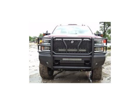 The Steel Craft Elevation front bumper comes in a textured black powder coat finish. It comes with bracketry, nuts, bolts, instructions, & a 1 year warranty. It is built out of 10 Gauge steel. It really gives your truck the heavy duty protection, along with that sporty off road 4x4 look. This bumper is bolt -on, and requires no drilling to install. It is built to accommodate the factory fog lights, & tow hooks. It has holes for the front park assist sensors, but the sensors may not funcition properly when installed. If you do not have them, it comes with stoppers for the holes. It is pictured with a 20" light bar mounted in it. Although not included, it will accommodate a 20" double row light bar, but not all 20" light bars will work without modification. The distance between the brackets is 22 1/2". If you are not planning on installing a light bar, the hole is covered with wire mesh. It also comes with the mounting hardware. It will NOT accommodate winch.