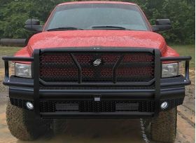 The Steel Craft HD front bumper comes in a mild black powder coat finish. It comes with bracketry, nuts, bolts, instructions, & a 1 year warranty. It will accommodate factory tow hooks, front park assist sensors, & factory fog lights.