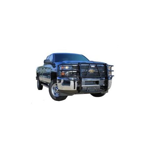 The Legend series Grille Guard by Ranch Hand comes with a black powder coat finish. It does come with install hardware. It also comes with a 1 year MFG warranty This guard will not work with the front park assist sensors.