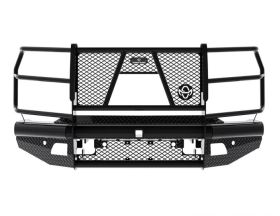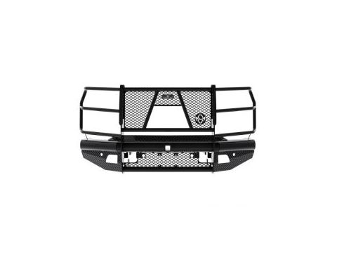 The Ranch Hand Legend Series full front bumper comes with a black powder coat finish. It does come with install hardware. It will work with the factory fog lights & tow hooks on most applications, contact us to verify upon purchase. It also comes with a 1 year MFG warranty. It has holes for the front park assist sensors. If your truck does not have sensors, it has stoppers for those holes. Although the bumper does have holes for these sensors, it is not guaranteed to work with the sensors correctly. Most people just turn them off.