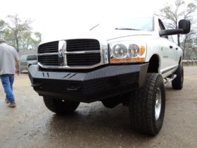 The front bumper with no top by Thunderstruck comes with a black powder coat finish. It does come with install hardware. It also comes with a 1 year MFG warranty.