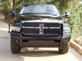 The Frontier Gear Full Front Bumper comes with a black powder coat finish. It does come with install hardware. It also comes with a 1 year MFG warranty. It will work with the factory fog lights & tow hooks.
