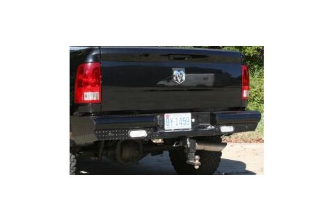 The Fab Fours Black Steel Rear Bumper comes with a black powder coat finish. It does come with install hardware. It also comes with a 1 year MFG warranty. This bumper is built to work with the OE tow hitch. It will not work without a factory tow hitch or with an aftermarket hitch. Most applications will accommodate the factory park assist sensors.