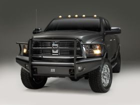 The Fab Fours Black Steel Elite front bumper comes with a flat black powder coat finish. It does come with install hardware. It also comes with a 1 year MFG warranty. This bumper is built to work with the OE fog lights & comes with replacement tow hooks