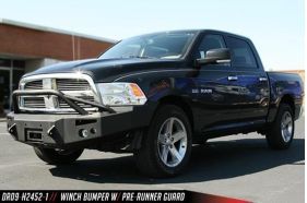 Engineered winch mount for a 16,500 LB winch or smaller. 1/4" Boxed mounting system to allow a "custom" fit and strength. 3/4" D-Ring mounts. Air Ducts. FAB FOURS' 90mm fog and 60mm turn indicators with all wiring are included FREE with the bumper.
