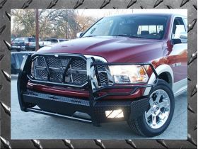 The Frontier Gear Full Front Bumper comes with a black powder coat finish. It does come with install hardware. It also comes with a 1 year MFG warranty. It will work with the factory fog lights & tow hooks.