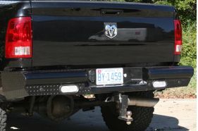 The Fab Fours Black Steel Rear Bumper comes with a black powder coat finish. It does come with install hardware. It also comes with a 1 year MFG warranty. This bumper is built to work with the OE tow hitch. It will not work without a factory tow hitch or with an aftermarket hitch. Most applications will accommodate the factory park assist sensors.