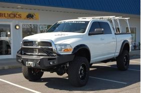 Engineered winch mount for a 16,500 LB winch or smaller. 1/4" Boxed mounting system to allow a "custom" fit and strength. 3/4" D-Ring mounts. Air Ducts. FAB FOURS' 90mm fog and 60mm turn indicators with all wiring are included FREE with the bumper.