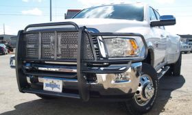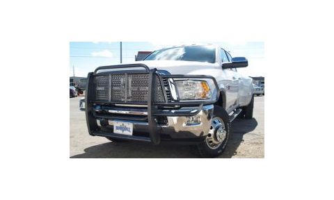 The grille guard by Thunderstruck comes with a black powder coat finish. It does come with install hardware. It also comes with a 1 year MFG warranty.