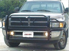 The Frontier Gear Grille Guard comes with a black powder coat finish. It comes with install hardware & instructions. Some models require drilling to install. It comes with a 1 year MFG warranty