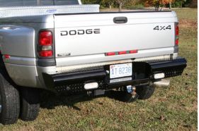 The Fab Fours Black Steel Rear Bumper comes with a black powder coat finish. It does come with install hardware. It also comes with a 1 year MFG warranty. This bumper is built to work with the OE tow hitch. It will not work without a factory tow hitch or with an aftermarket hitch. Most applications will accommodate the factory park assist sensors.
