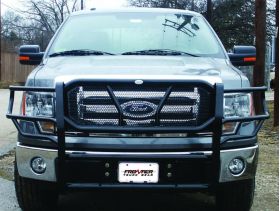 The Frontier Gear Grille Guard comes with a black powder coat finish. It comes with install hardware & instructions. Some models require drilling to install. It comes with a 1 year MFG warranty