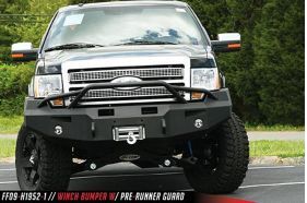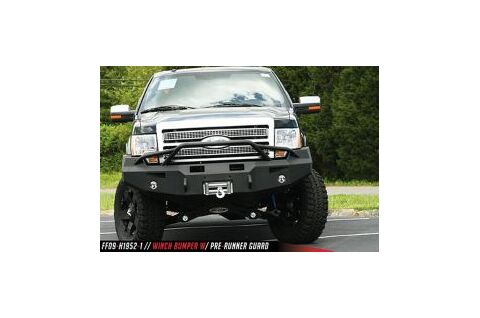 Engineered winch mount for a 16,500 LB winch or smaller. 1/4" Boxed mounting system to allow a "custom" fit and strength. 3/4" D-Ring mounts. Air Ducts. FAB FOURS' 90mm fog and 60mm turn indicators with all wiring are included FREE with the bumper.
