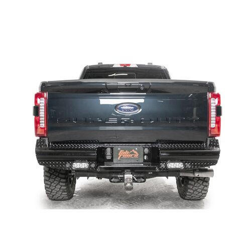 The Fab Fours Black Steel Rear Bumper comes with a black powder coat finish. It does come with install hardware. It also comes with a 1 year MFG warranty. This bumper is built to work with the OE tow hitch. It will not work without a factory tow hitch or with an aftermarket hitch. Most applications will accommodate the factory park assist sensors.