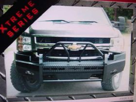 The Frontier Gear Xtreme Front Bumper comes with a black powder coat finish. It does come with install hardware. It also comes with a 1 year MFG warranty. It will work with the factory fog lights & tow hooks.