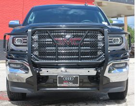 The Steel Craft HD Grille Guard comes with a mild black powder coat finish. It comes with install hardware & instructions. It comes with a 1 year MFG warranty This guard will not work with front park assist sensors.