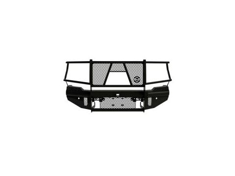 The Ranch Hand Legend Series full front bumper comes with a black powder coat finish. It does come with install hardware. It will work with the factory fog lights & tow hooks on most applications, contact us to verify upon purchase. It also comes with a 1 year MFG warranty. It has holes for the front park assist sensors. If your truck does not have sensors, it has stoppers for those holes. Although the bumper does have holes for these sensors, it is not guaranteed to work with the sensors correctly. Most people just turn them off.
