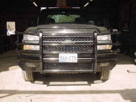 The Boss Hog front bumper comes in a black powder coat finish. It comes with bracketry, but no bolts, nuts, washers, or instructions. The bumper comes with no warranty & there are no refunds or exchanges with this bumper.